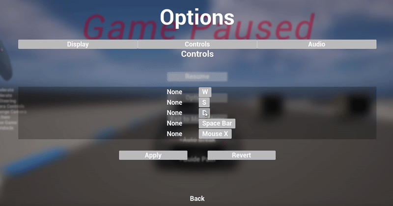 During this week of production, I ran into an issue with out remappable key system when testing the OptionsMenu inside the MainMenu. While the feature worked perfectly in-game, the MainMenu Version displayed no controls or showed "None" as the action labels.